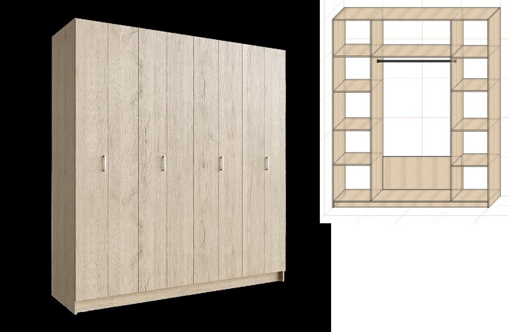 Шкаф 2-х дверный с 3-мя ящиками, "Гармошка"